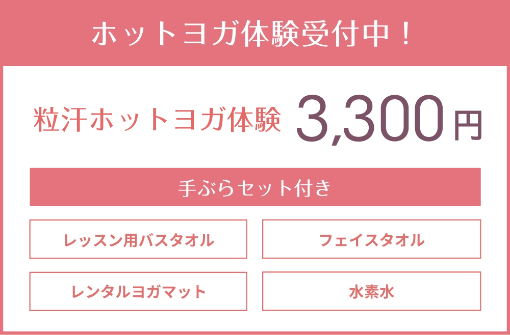 - ホットヨガプログラムがさらに充実!週25 本、月100 本を超えるプログラムをご用意しておりますので、予定も立てやすく、忙しい方にも便利です。