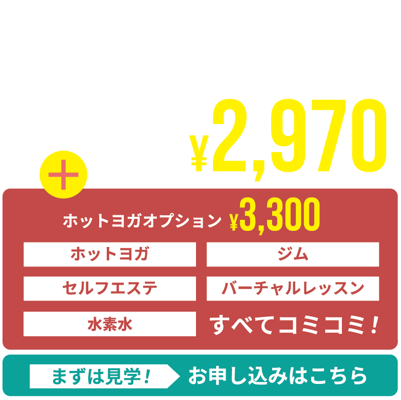 ホットヨガ・スタジオレッスン・ジム・バーチャルレッスン・セルフエステマシン使い放題