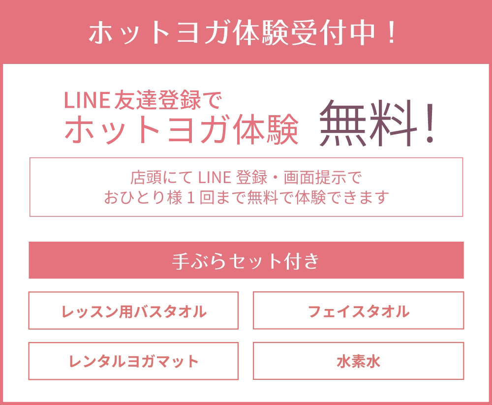 - ホットヨガプログラムがさらに充実!週25 本、月100 本を超えるプログラムをご用意しておりますので、予定も立てやすく、忙しい方にも便利です。